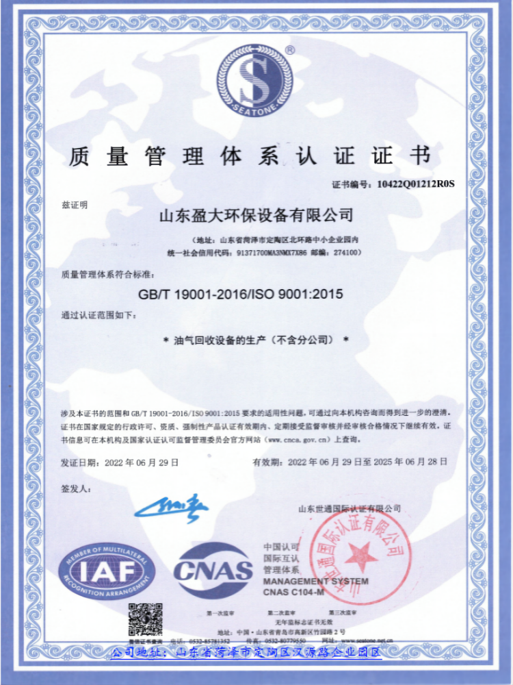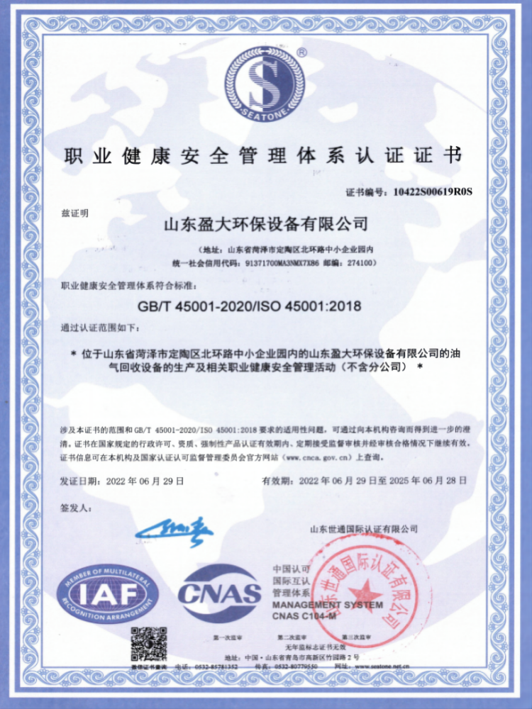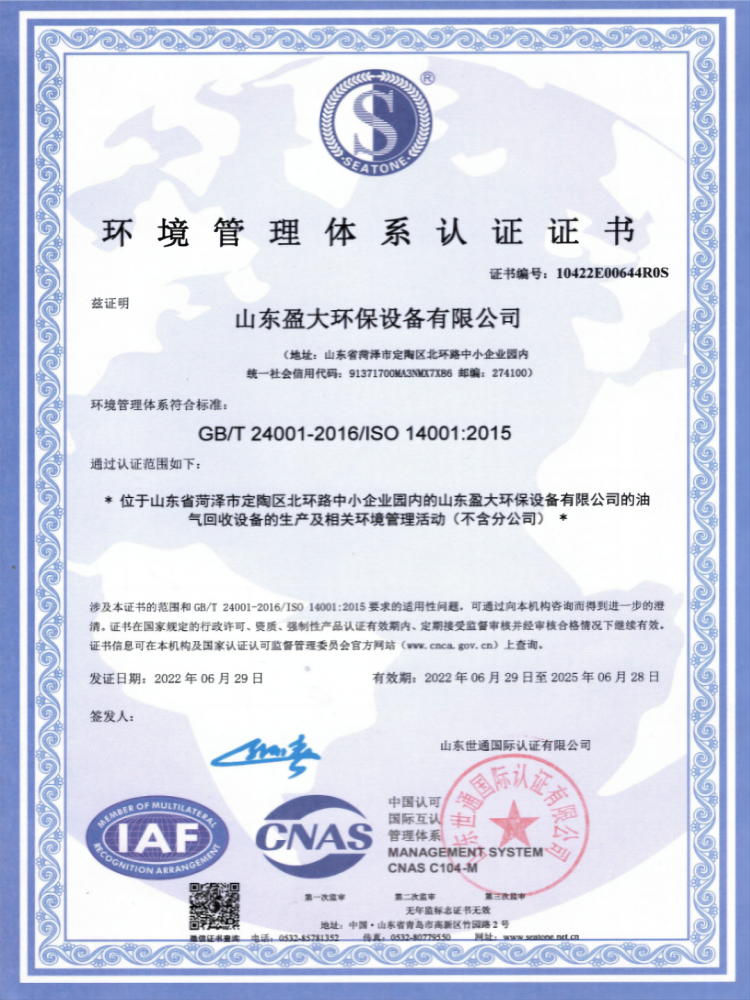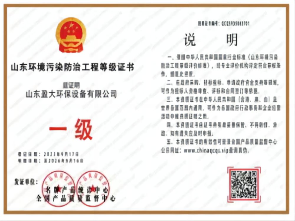 山东环境污染等级证书
